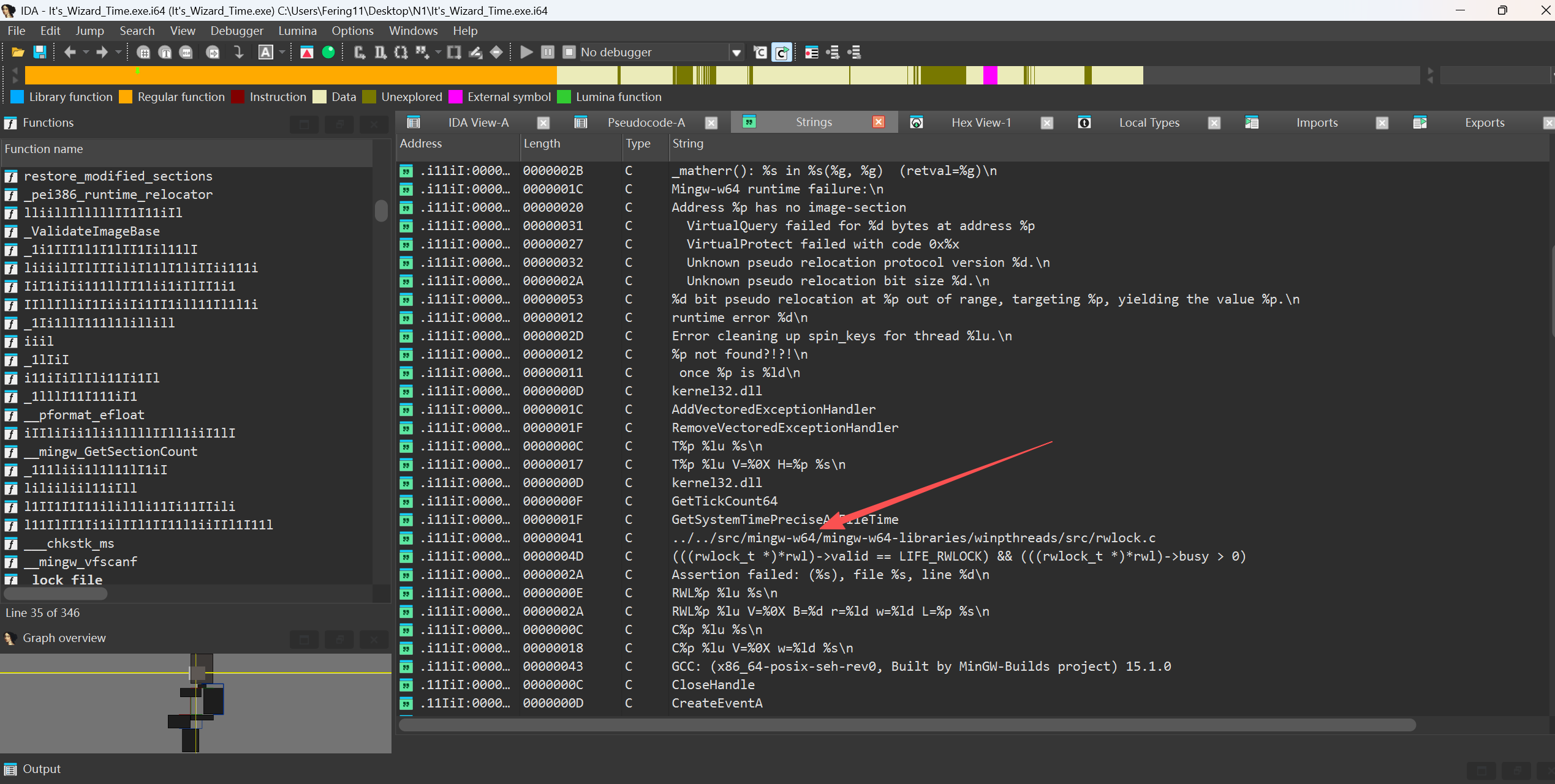 可以发现这个是mingw-w64 编译的,我们照葫芦画瓢,编译一个出来,然后bindiff恢复符号。