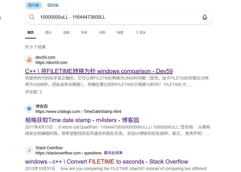 看来是把FILETIME时间戳转换为了UNIX的时间戳,二者的起始时间不一样,精度也不同。