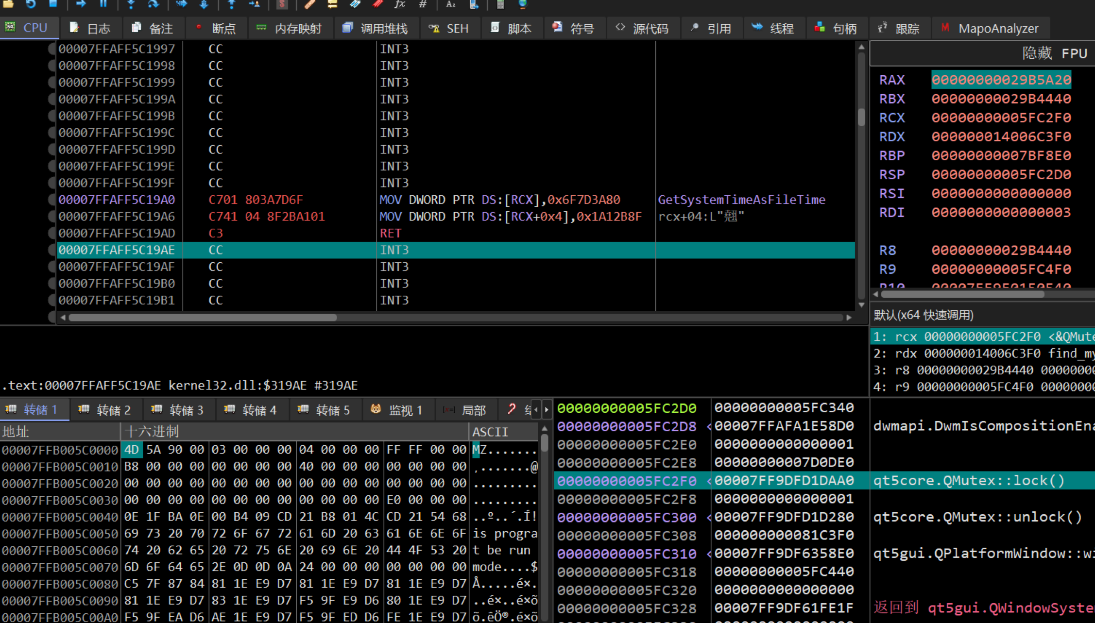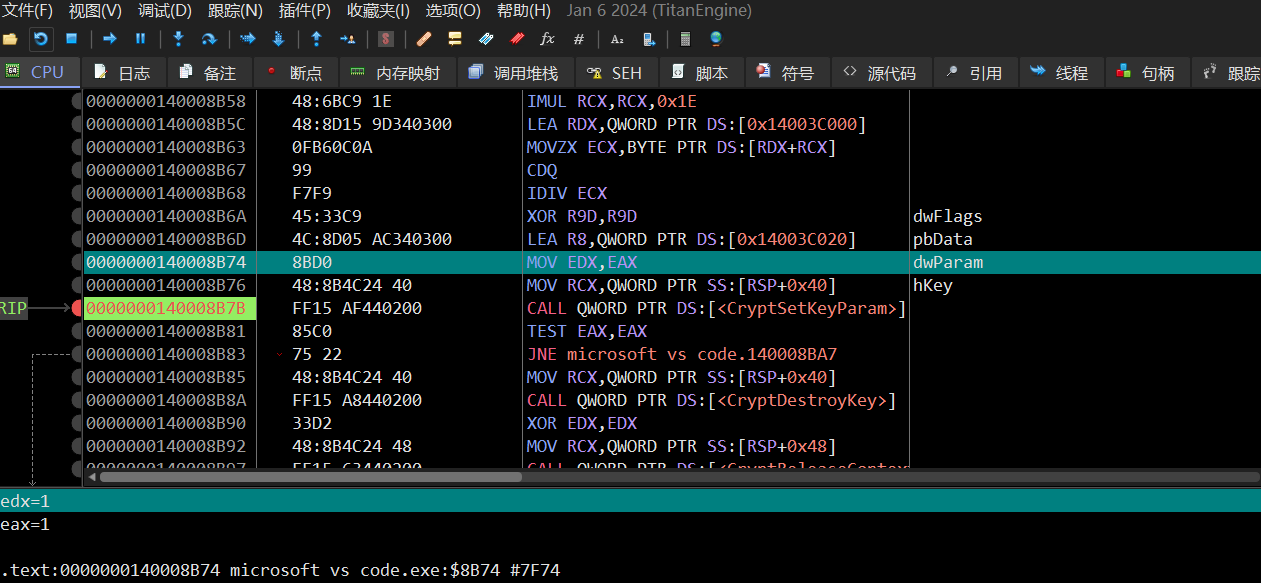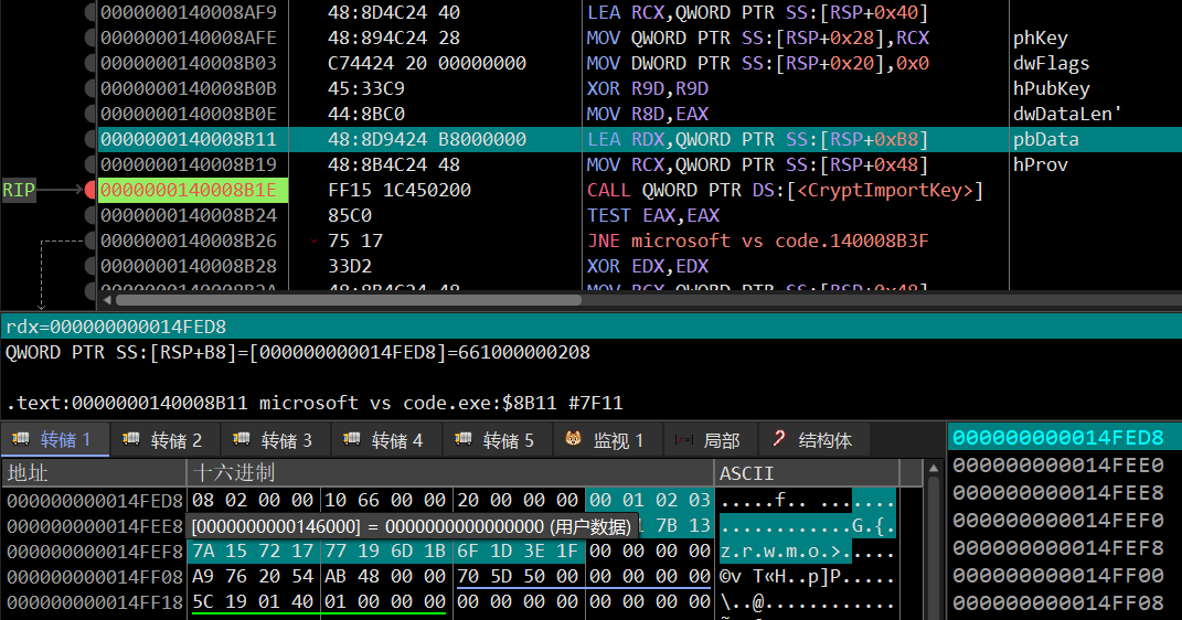 接下来我开始深入研究sub_7FF6FB6B1540函数,调试返回的结果看不出什么东西,但是能够发现这个很关键的东西: