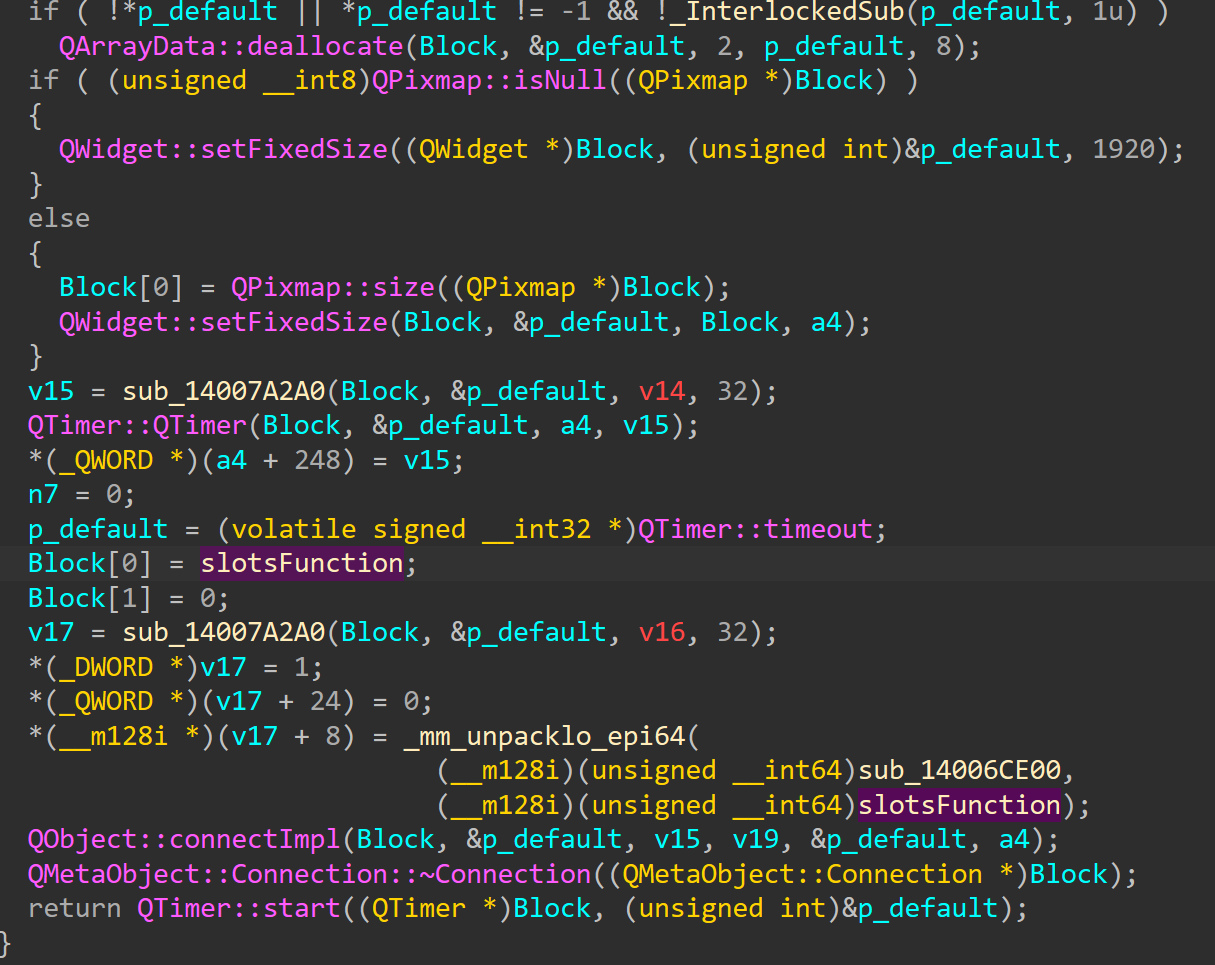 有Pixmap,说明程序在哪里加载了位图,或者我们的flag就是贴在图片里面的。但是先把重心返回到槽函数中