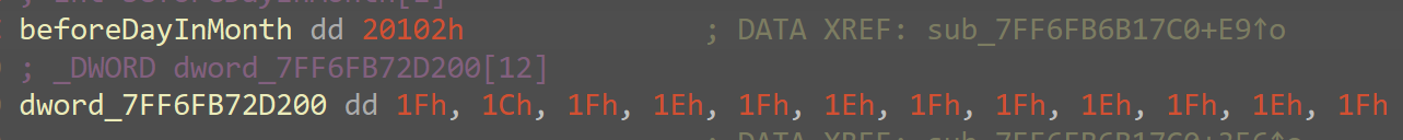 还有一个月天数数组: