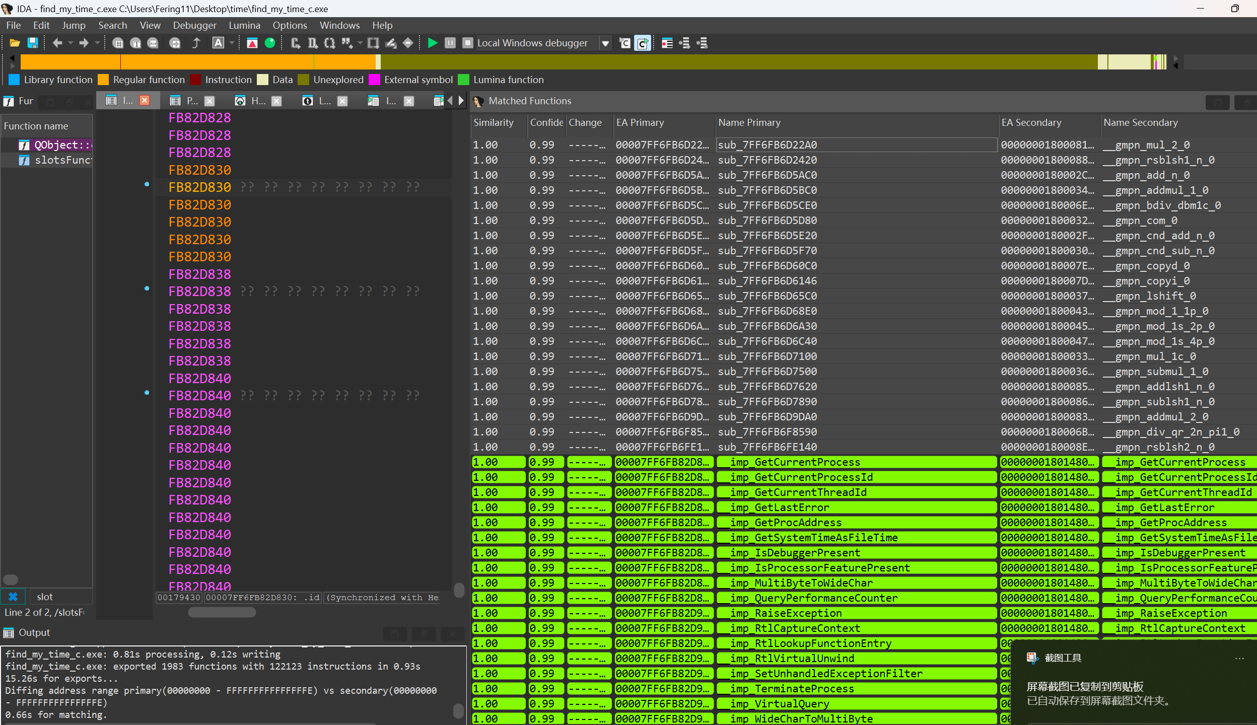 程序包含了gmp库。为了降低逆向难度,我这里使用了网上别人编译的6.3.0的版本进行了bindiff合并符号