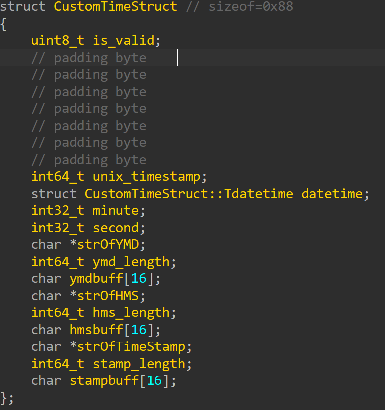 后面为了快速分析sub_7FF6FB6B17C0(时间处理函数)干了什么和恢复可读性,我将伪代码喂给了AI并让其生成了一个结构体