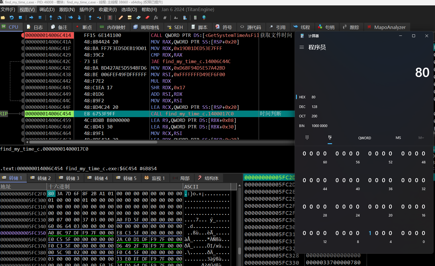 后面经过我的动调,可以确定这个是将FILETIME进行时间分离的,动调可以看出分离了