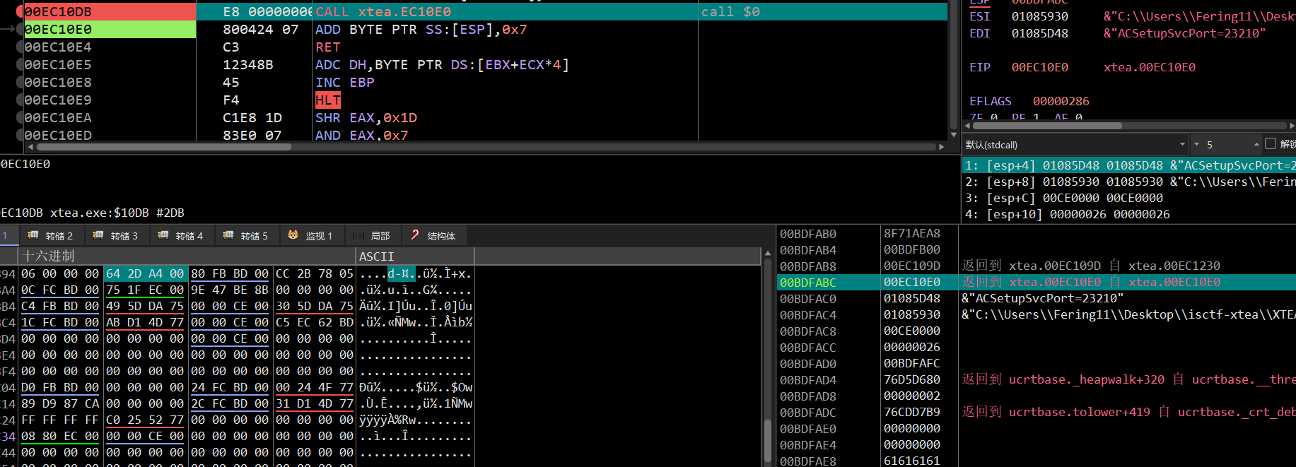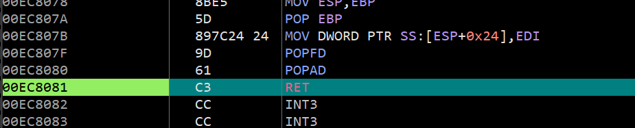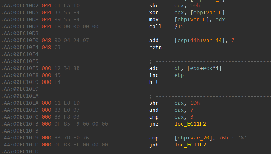 00EC10E7 由于混淆,这里变成了奇奇怪怪的指令