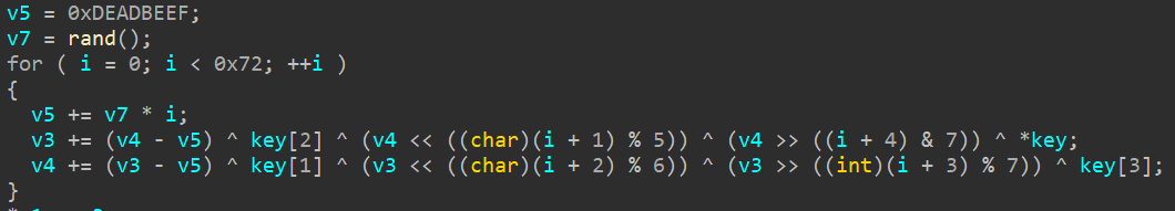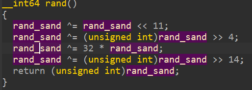 | int calc_sand() { unsigned long long start[280] = { 0x8949ED31FA1E0FF3, 0xE48348E289485ED1, 0xC931C031455450F0, 0xFF00401760C7C748, 0x2E66F400002E8315, 0x0000000000841F0F, 0x0F2E66C3FA1E0FF3, 0x900000000000841F, 0x503D4800404050B8, 0x0000B81374004040, 0xBF0974C085480000, 0x9066E0FF00404050, 0x00841F0F2E6666C3, 0x00401F0F00000000, 0xEE814800404050BE, 0x48F0894800404050, 0x4803F8C1483FEEC1, 0xB81174FED148C601, 0x74C0854800000000, 0xE0FF00404050BF07, 0x00841F0F2E6666C3, 0x00401F0F00000000, 0x2E653D80FA1E0FF3, 0x8948551375000000, 0x05C6FFFFFF7AE8E5, 0x90C35D0100002E53, 0x00841F0F2E6666C3, 0x00401F0F00000000, 0x0FF38AEBFA1E0FF3, 0x058BE5894855FA1E, 0x890BE0C100002E3C, 0x3100002E31058BC2, 0x8B00002E290589D0, 0x04E8C100002E2305, 0x00002E18058BC289, 0x00002E100589D031, 0xE0C100002E0A058B, 0x002DFF058BC28905, 0x002DF70589D03100, 0xC100002DF1058B00, 0x2DE6058BC2890EE8, 0x2DDE0589D0310000, 0x00002DD8058B0000, 0x4855FA1E0FF3C35D, 0x894830EC8348E589, 0x45C7D0758948D87D, 0xE445C700000000E0, 0xD8458B4800000000, 0xE845C748F0458948, 0x8B4834EB00000000, 0x0148E8458B48F055, 0x48C0B60F00B60FD0, 0x4501C2AF0FE8558B, 0x458B48F0558B48E0, 0x0F00B60FD00148E8, 0x458348E44531C0B6, 0x3B48E8458B4801E8, 0x000000B9C272D045, 0x00BE00000000BA00, 0x00000000BF000000, 0xFDD6E800000000B8, 0x8B48F8458948FFFF, 0x45AF0FE44533F845, 0x55FA1E0FF3C3C9E0, 0x48E87D8948E58948, 0x45C7DC5589E07589, 0x008EE900000000FC, 0x02E0C1FC458B0000, 0x8B4803508D489848, 0x00B60FD00148E845, 0xE2C1FC558BC0B60F, 0xE8558B48CA634802, 0xB60F12B60FCA0148, 0x458BC20908E2C1D2, 0x8D48984802E0C1FC, 0x0148E8458B480248, 0xC1C0B60F00B60FC8, 0x458BC109D18910E0, 0x8D48984802E0C1FC, 0x0148E8458B480150, 0xC1C0B60F00B60FD0, 0x48FC458BC28918E0, 0x00000085348D4898, 0xF00148E0458B4800, 0x01FC45831089CA09, 0xC08503508DDC458B, 0x453902F8C1C2480F, 0x90FFFFFF5B8C0FFC, 0x55FA1E0FF3C35D90, 0x48E87D8948E58948, 0x45C7DC5589E07589, 0x00C4E900000000FC, 0x489848FC458B0000, 0x480000000085148D, 0x088BD00148E8458B, 0x984802E0C1FC458B, 0xE0458B4802508D48, 0x8B1088CA89D00148, 0x85148D489848FC45, 0xE8458B4800000000, 0x08E8C1008BD00148, 0x02E0C1FC458BC189, 0x8B4803508D489848, 0x88CA89D00148E045, 0x8D489848FC458B10, 0x8B48000000008514, 0xC1008BD00148E845, 0xC1FC458BC18910E8, 0x458B48D0634802E0, 0x1088CA89D00148E0, 0x148D489848FC458B, 0x458B480000000085, 0xE8C1008BD00148E8, 0xE0C1FC458BC18918, 0x4801508D48984802, 0xCA89D00148E0458B, 0x458B01FC45831088, 0xFF308C0FDC453BFC, 0x0FF3C35D9090FFFF, 0x8348E5894855FA1E, 0x8D48D87D894830EC, 0x458948FFFFFC3305, 0x000004E5058D48F0, 0x48FFFFFC21158D48, 0x8B48F8458948D029, 0x8948F0458B48F855, 0xFFFD61E8C78948D6, 0xBF00002B310589FF, 0xFFFBE7E800000001, 0x00000000EC45C7FF, 0xE800000000B841EB, 0x48EC558BFFFFFCCA, 0x0000950C8D48D263, 0x002B0F158D480000, 0xC189D03111148B00, 0x148D489848EC458B, 0x058D480000000085, 0x83020C8900002AF4, 0x7E03EC7D8301EC45, 0xC3C900000000B8B9, 0xE5894855FA1E0FF3, 0x048B486410EC8348, 0x4589480000002825, 0xB9F0458D48C031F8, 0x2B158D4800000000, 0x00000000BEFFFFFF, 0xFFFFFB38E8C78948, 0xE8C78948F0458B48, 0x458B4890FFFFFB0C, 0x002825042B4864F8, 0xFFFAE7E805740000, 0x55FA1E0FF3C3C9FF, 0x4830EC8348E58948, 0x48D0758948D87D89, 0xE84589008BD8458B, 0x8904408BD8458B48, 0xADBEEFF045C7EC45, 0xF3E800000000B8DE, 0x45C7F84589FFFFFB, 0xF445C700000072FC, 0x000102E900000000, 0xF845AF0FF4458B00, 0x488DF4458BF04501, 0x67C06948C1634801, 0x8920E8C148666666, 0x1FF8C1C889FAD1C2, 0x0102E0C1D089C229, 0xEC458BCA89C129D0, 0x8B48C289E0D3D189, 0x008B08C08348D045, 0xF0452BEC458BC231, 0x83F4458BC631D689, 0xEC558B07E08304C0, 0xD0458B48EAD3C189, 0x4501F031D031008B, 0x4802488DF4458BE8, 0xAAAAABC06948C163, 0xC2894820E8C1482A, 0x89C2291FF8C1C889, 0x29C001D001C001D0, 0xD189E8458BCA89C1, 0xD0458B48C289E0D3, 0xC231008B04C08348, 0xD689F0452BE8458B, 0x03C083F4458BC631, 0x2493D26948D06348, 0xC20120EAC1489249, 0x1FF9C1C18902FAC1, 0x2903E1C1D189CA29, 0xE8458BC289C829D1, 0x8B48C289E8D3D189, 0x008B0CC08348D045, 0x83EC4501F031D031, 0x453BF4458B01F445, 0x48FFFFFEF2820FFC, 0x1089E8558BD8458B, 0x04508D48D8458B48, 0xC3C9900289EC458B, 0xE5894855FA1E0FF3, 0x64000000C0EC8148, 0x0000002825048B48, 0x85C7C031F8458948, 0xFFFFFFFFFFFFFF48, 0x74FFFFFFFF48BD83, 0x00FFFFFF48BD8132, 0x48BD813974FFFF80, 0x77FFFF8000FFFFFF, 0x29FFFFFF48BD817B, 0x48BD815A74973A72, 0x74FFF98000FFFFFF, 0x0028A305C761EB38, 0x48A5C11234567800, 0x05C74EEB0FFFFFFF, 0x90ABCDEF00002894, 0xD089FFFFFF48958B, 0x0102E0C1D001C001, 0xEBFFFFFF488589D0, 0x190000287505C72B, 0xFFFF48B581114514, 0xC715EB68C3F229FF, 0x8101140000286305, 0x0CFFFFFF488D8119, 0xFF48BD81908D90E1, 0x05749FBAF32DFFFF, 0x8D4890FFFFFF53E9, 0xC789480000081305, 0x458D48FFFFF86BE8, 0x0F058D48C68948C0, 0x00B8C78948000008, 0xFFFFF8B0E8000000, 0xE8C78948C0458D48, 0xFF548589FFFFF854, 0xFFFFFF54BD83FFFF, 0x07E5058D48197430, 0xF826E8C789480000, 0xE90001BF52B8FFFF, 0x608D8D4800000133, 0xBAC0458D48FFFFFF, 0x48CE894800000030, 0xC7FFFFFA7CE8C789, 0x000000FFFFFF4C85, 0xFFFF4C858B7AEB00, 0xFF6085848B9848FF, 0xFFFFFF588589FFFF, 0xC083FFFFFF4C858B, 0xFF6085848B984801, 0xFFFFFF5C8589FFFF, 0x48FFFFFF58858D48, 0x89480000277A158D, 0xFFFCEAE8C78948D6, 0x8BFFFFFF58958BFF, 0x899848FFFFFF4C85, 0x858BFFFFFF608594, 0x8B01C083FFFFFF4C, 0x899848FFFFFF5C95, 0x8583FFFFFF608594, 0x4CBD8302FFFFFF4C, 0xFF798E0F0BFFFFFF, 0x8D48904D8D48FFFF, 0x000CBAFFFFFF6085, 0xC78948CE89480000, 0x5085C7FFFFFA96E8, 0xEB00000000FFFFFF, 0x48FFFFFF50858B41, 0x858B900554B60F98, 0x8D489848FFFFFF50, 0x04B60F0000069B0D, 0x058D481674C23808, 0xE8C78948000006E1, 0x01BF52B8FFFFF714, 0xFFFF50858324EB00, 0xFFFFFF50BD8301FF, 0x06C7058D48B67E2F, 0xF6EEE8C789480000, 0x48001D4B42B8FFFF, 0x25142B4864F8558B, 0xF5E8057400000028, 0x000000C3C9FFFFF6, 0x08EC8348FA1E0FF3, 0x000000C308C48348 }; int v3 = 0; int v4 = 0; for (int i = 0; i != 0x8BD; ++i) { v3+=i*((BYTE*)(start))[i]; v4 ^= ((BYTE*)(start))[i]; } return v3 * (v4 ^ 0); }